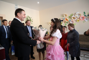 Во время посещения губернатор поздравил с 14-летием воспитанницу Яну Курочкину, вручив ей подарок. Воспитанник Влад Слепцов поделился своими успехами в дзюдо и самбо.