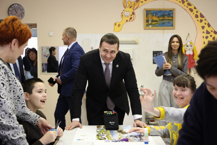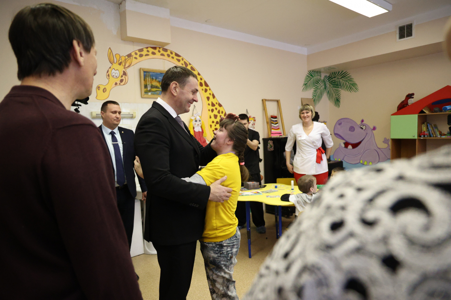 Губернатор Хабаровского края Дмитрий Демешин побывал в отделении социальной реабилитации детского психоневрологического интерната, расположенного в селе Тополево Хабаровского района. Здесь проходят реабилитацию 112 детей-инвалидов в возрасте до 18 лет, имеющих тяжелые нарушения развития.